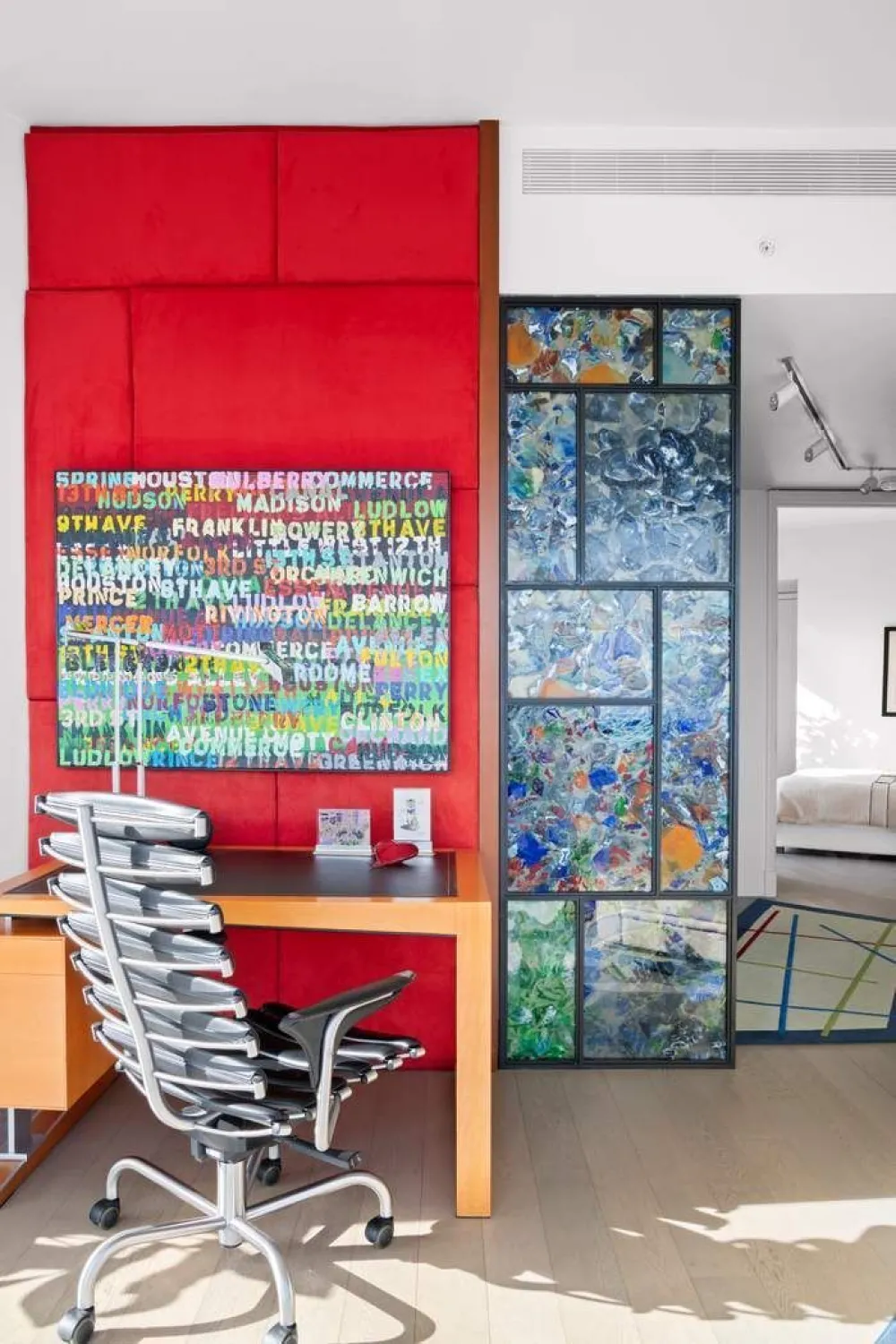 There are playful aspects including the bar on the Park, stained glass panel, and custom lighting.