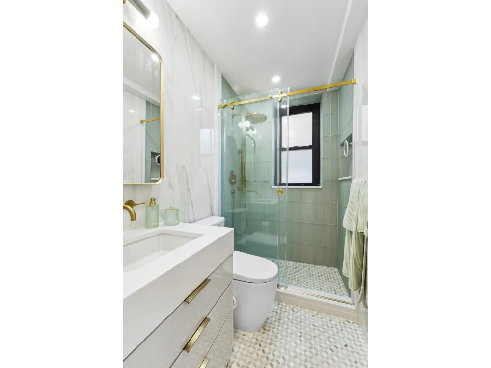The bedroom has two exposures, bright western and northern views, along with built-ins throughout the bedroom for plenty of storage. The bathroom was also completely renovated and features a window.