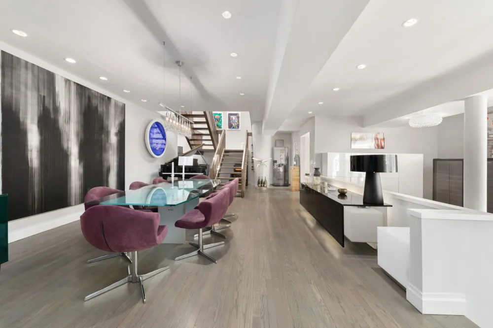 The penthouse is designed with comfort and convenience in mind, featuring three-phase electric power shades throughout (with blackout shades in all bedrooms), and split AC systems on each floor for personalized climate control. A dedicated storage unit in the basement ensures that every inch of the home is maximized for both elegance and practicality.