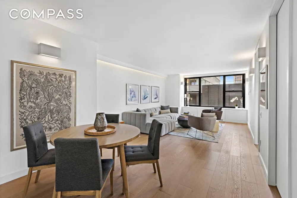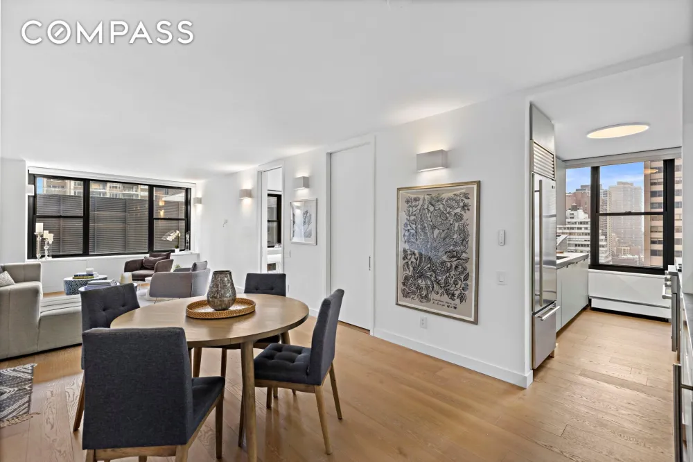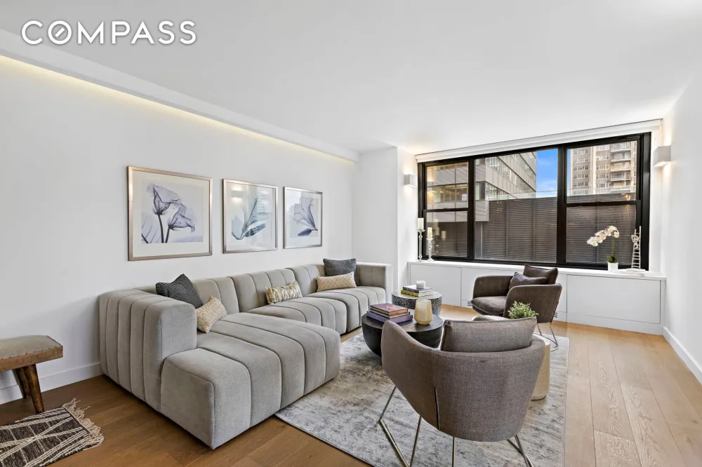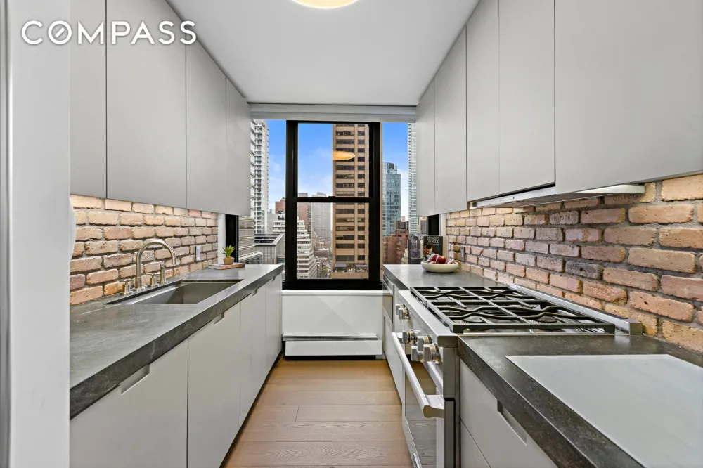 Apartment 21H: This developers newly renovated corner unit sits on the 21st floor providing bright daylight throughout the year. This stunning home features a gracious entry foyer which leads to a sun-filled open concept living room / dining room area perfect for entertaining. This new high-end renovation includes white oak wide plank floors throughout, a chefs kitchen with a large window with eastern light, significant counter space cabinet storage along with top Miele stainless steel appliances, two-inch stone countertops and red brick backsplash make this kitchen exceptional. Installed throughout are custom lighting including backlit lighting, sconces, recessed on lutron systems. Additional appliances include a wine refrigerator, and Bosch washer/dryer.