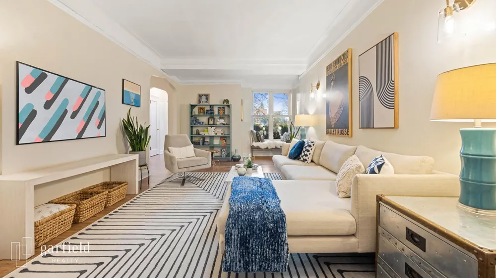 Located in one of Ocean Parkway’s most desirable pre-war elevator buildings, this expansive and serene home sits on an elevated first floor, offering western and northern exposures and abundant sunlight.Thoughtfully designed with a flexible layout, this airy residence features charming art deco details,... See more
