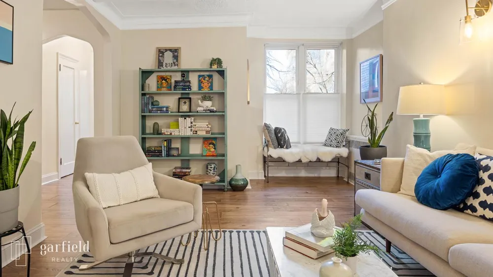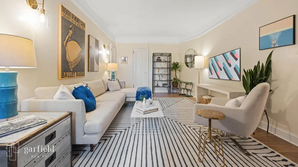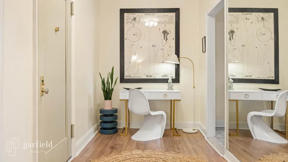 Thoughtfully designed with a flexible layout, this airy residence features charming art deco details, archways, high ceilings, and exceptional storage, including two oversized walk-in closets—one larger than some New York City bedrooms! The spacious entryway comfortably accommodates a home office and leads to a generous living room. A windowed eat-in kitchen boasts ample cabinetry, stone countertops, and stainless-steel appliances. The tranquil corner king-size bedroom provides a restful retreat, while the gut-renovated windowed bathroom showcases tasteful finishes.