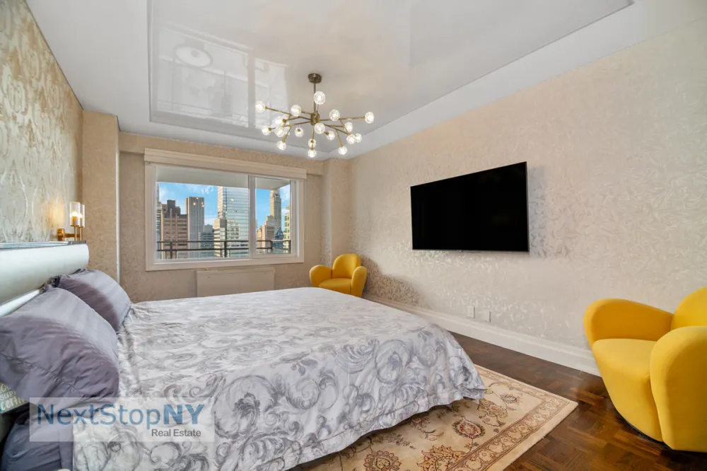 Indulge in unparalleled sophistication and luxury within this meticulously renovated New York City apartment, offering panoramic skyline and Central Park views. This oversized junior 4 residence features views of Central Park and the Manhattan skyline along with a customizable open floor plan, promising a lifestyle of unparalleled refinement and flexibility. Throughout the apartment, high-end LED ceiling lighting illuminates each space with a gentle glow.