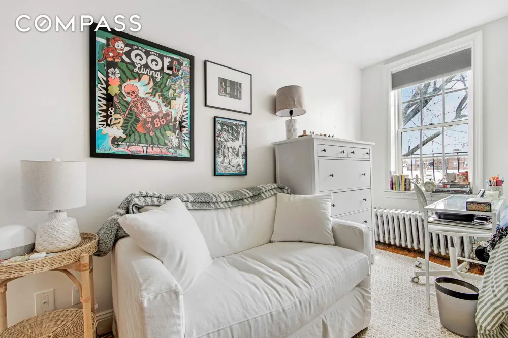 This intimate and well maintained pre-war coop, composed of three prewar buildings, offers a planted common garden and courtyard. Superb West Village location on a cobblestone block between Washington and Greenwich Streets. This is four flights up but most definitely worth it. Parental gifts and co-purchases are allowed with Board Approval. Perfect for pied-a-terre. No dogs, please.