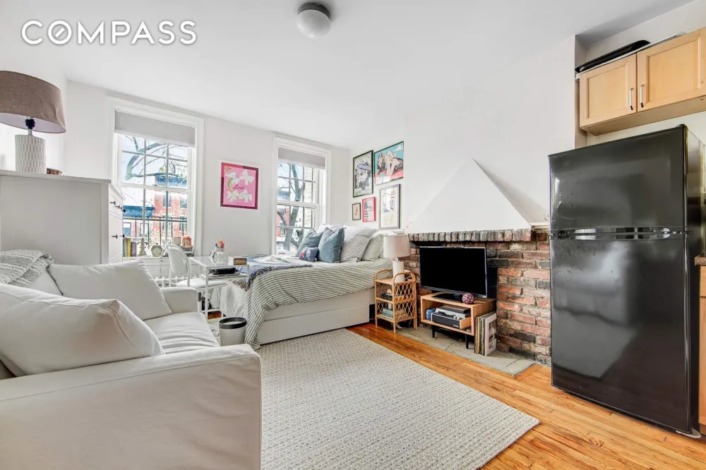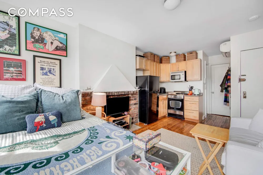 Quintessential West Village Oasis! Perched on the top floor of a professionally managed boutique co-op, this charming and bright studio offers sunny southern views over the treetops of the West Village. The living area features a cozy decorative brick fireplace, original wooden floors throughout and... See more