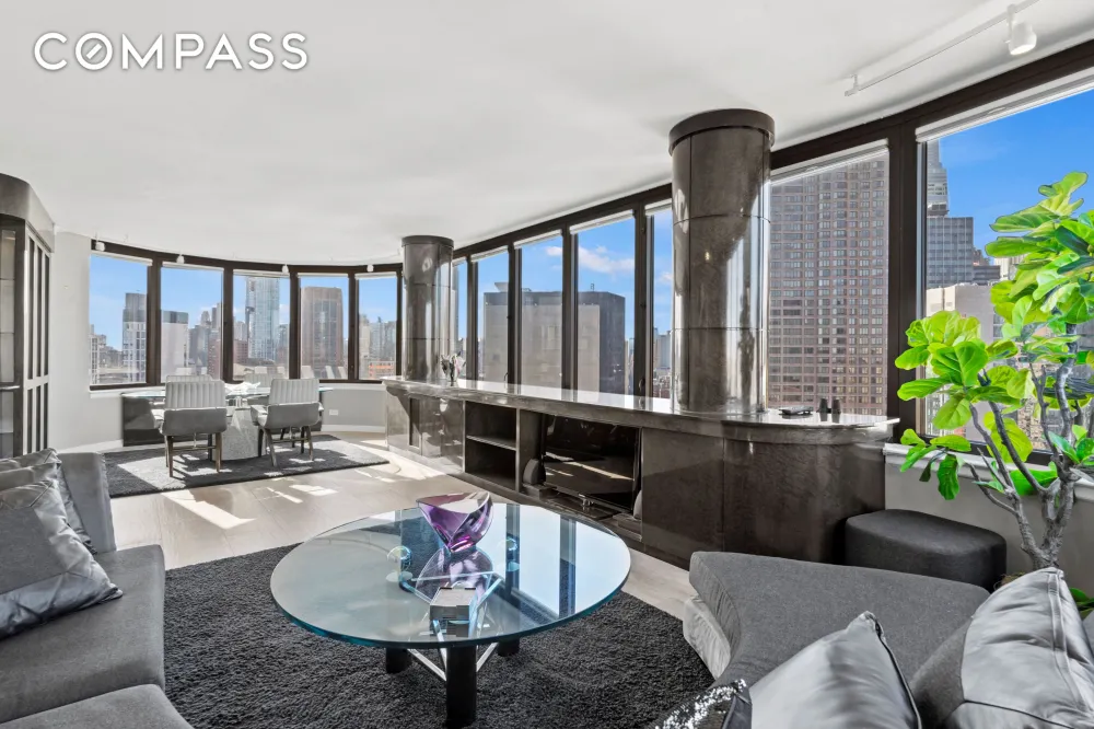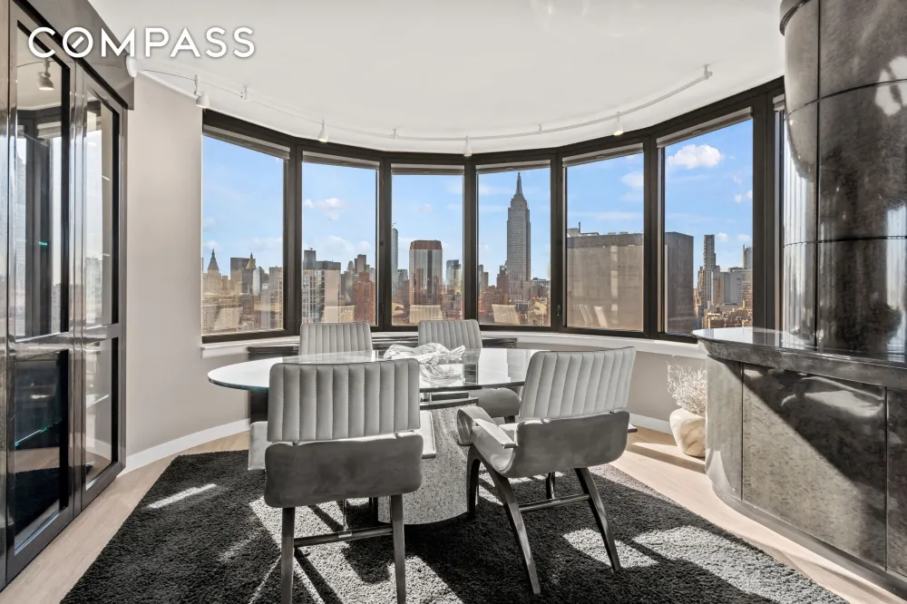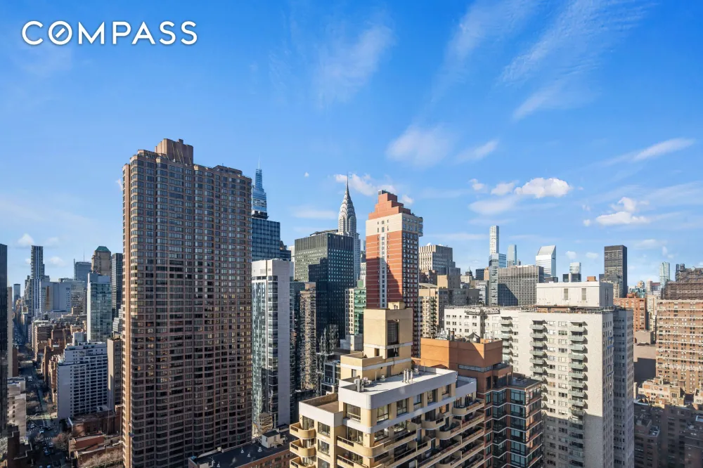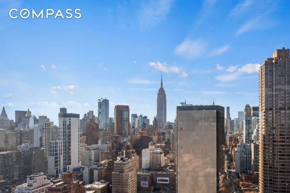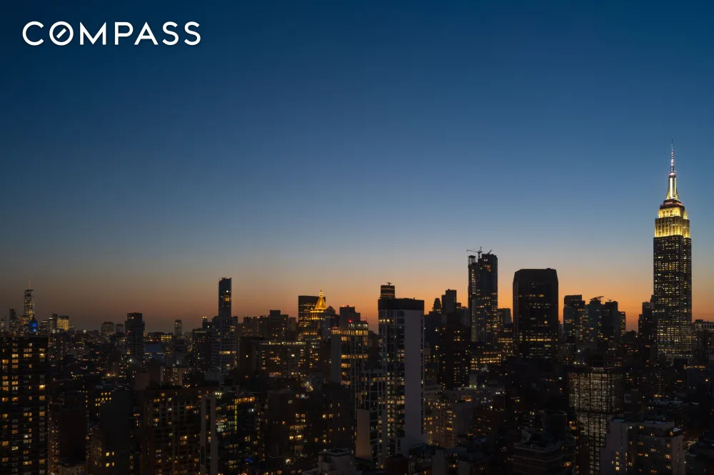 Perchеd οn a high flοοr аt the іcοnic Corinthian condomіnium, thіs turnkey two-bedroom home offers breathtaking panoramic views—from One World Trade and the Empire State Building to the Chrysler Building and the East River. Oversized windows flood the space with natural light throughout the day and showcase stunning sunsets and dazzling nighttime cityscapes. The expansive living and dining area features triple exposures to the south, west, and north, along with custom built-ins and a stylish wet bar—perfect for entertaining. The kitchen is thoughtfully designed with custom cabinetry, Caesarstone countertops, a glass tile backsplash, and high-end appliances including a dishwasher and microwave. The spa-like guest bathroom is finished in floor-to-ceiling glass tile and includes a sleek glass-enclosed walk-in shower. One bedroom is outfitted with a custom Murphy bed and built-in home office, offering a framed view of the Empire State Building. The king-size primary suite includes abundant closet space—including a walk-in—an en suite bathroom, and direct access to a private balcony with stunning views of the Chrysler Building and East River. Washer and dryer installation is permitted, and the home is also available fully furnished, featuring custom-designed pieces tailored specifically for the space.