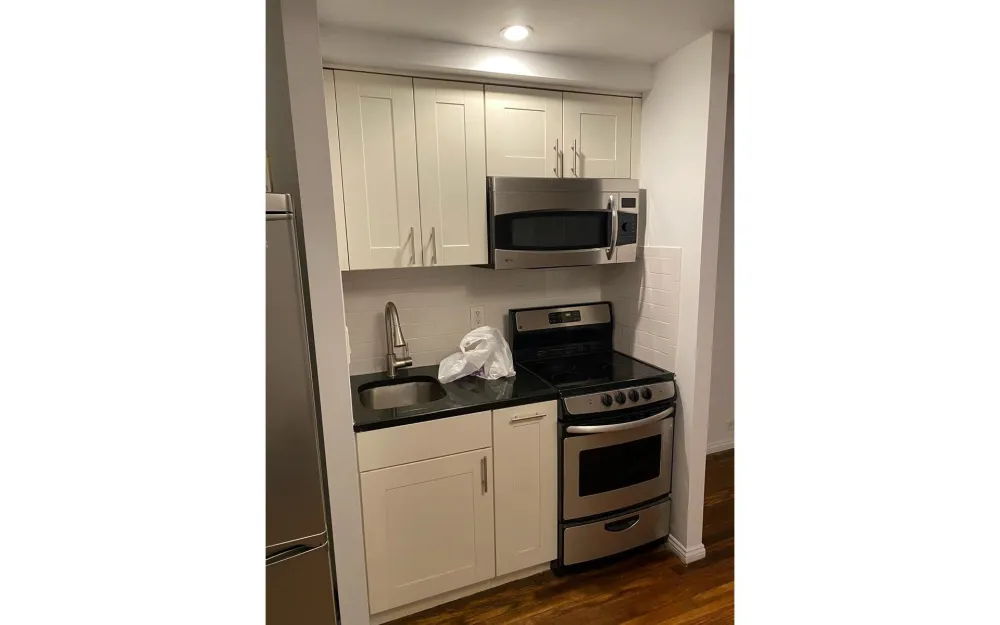 The kitchen is located midway between 2 alcoves giving you lots of options for how and where to place furnishings. Use one end of the apartment for your bed, the opposite side for a cozy living area.