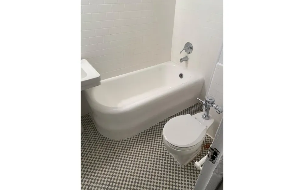 As for the bathroom, its main feature is the original deep soaking tub. Soon-to-be-completed upgrades will include a chic new sink/vanity and a new lighting fixture.