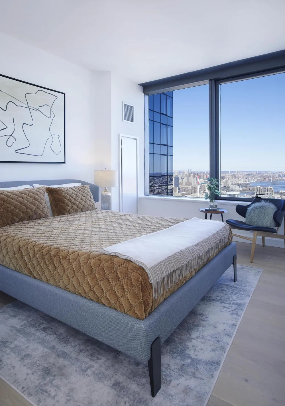 The high ceiling Penthouse three bedroom, with a southeast exposure, is highlighted by incredible panoramic views. You’ll be thrilled with the distinctive European white oak engineered wood floors and spacious living room that welcomes in the outside with abundant natural light pouring in through the large curtain wall-style windows. The oversized master suite includes a roomy walk-in closet and luxurious bathroom with walk-in shower.