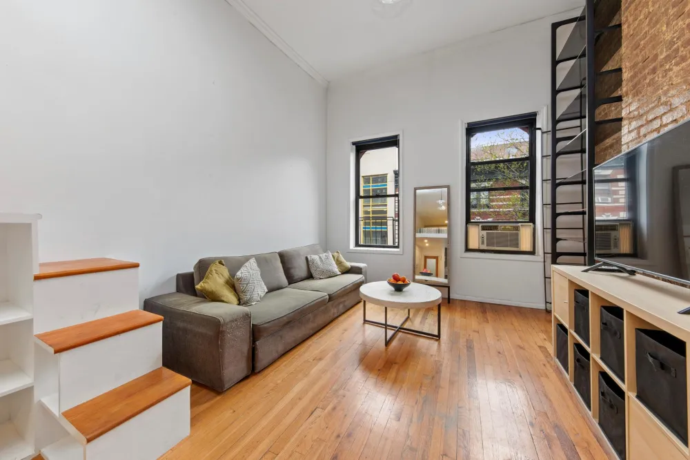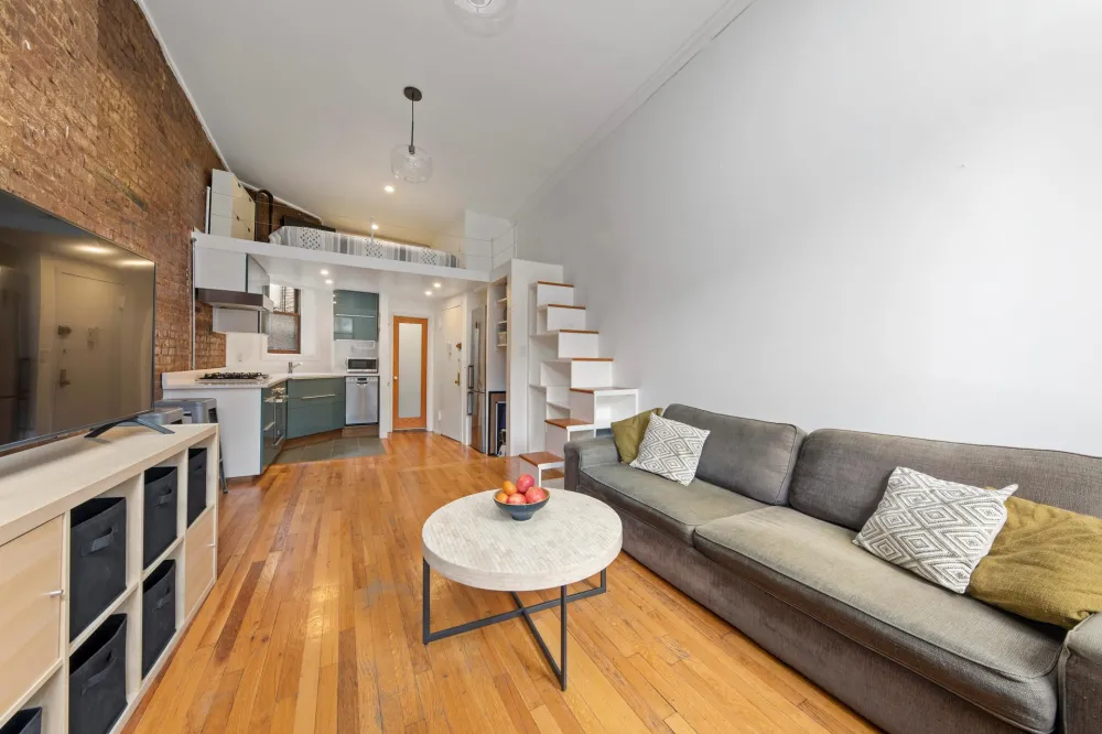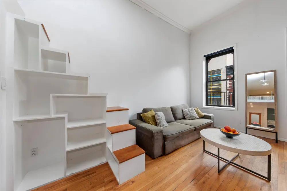 Enjoy the best of Upper East Side living in the finely renovated studio apartment enhanced by the addition of a full loft. nestled under the loft is the large open kitchen using the width of the apartment for glossy modern cabinets, dishwasher, microwave, and full sized stainless steel refrigerator. Sky and sun are yours from the kitchen window above the sink. When you enter you will be greeted by the super tall ceiling and open floor plan with the unique features of stylish black metal shelves almost to the ceiling for books and mementos and storage cubbies under the loft stairs for quick accessibility. Your bathroom is a serene retreat with new vanity, lights, and updated floor tiles. The apartment is a special find and a gift to yourself with space enhancing features and quality renovation only four flights up. The co-op welcomes pied-a-terre ownership, co-purchasing, parents purchasing, and sublets 2 out of 5 years after 2 years of ownership. Pet friendly, currently no restrictions. 1.5 percent flip tax at closing.
