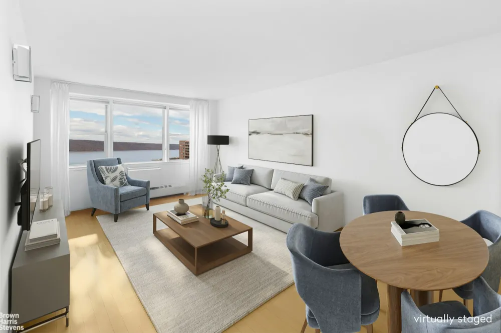 Perched on one of the highest floors in the building, this updated one-bedroom boasts unobstructed Hudson river views from every window. #21A is off the elevator corridor (no catwalks) and boasts a tiled entry foyer, a renovated kitchen with modern wooden cabinets, stainless steel appliances and granite countertops with an extended breakfast bar, an updated bathroom, handsome hardwood flooring and abundant closet space throughout.