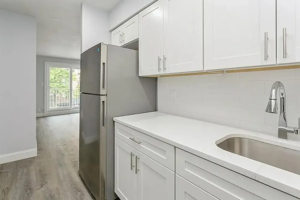 Welcome to this bright and airy studio apartment located in the heart of Bay Ridge, Brooklyn. L-Shaped ultra-modern boutique condo. This well-appointed unit features a balcony offering breathtaking views of the iconic Verrazzano-Narrows Bridge-perfect for morning coffee or evening sunsets. With an open layout and new large windows that flood the space with natural light, this studio combines comfort and charm in one of Brooklyn's most sought-after neighborhoods. Every detail has been thoughtfully upgraded-from sleek LED recessed lighting to a brand-new kitchen featuring stainless steel appliances and quartz countertops. The bathroom boasts contemporary finishes with porcelain tile and a spa-inspired feel. There are new sliding doors to the balcony, a new AC unit, three spacious closets, all new electric, baseboard heating. There is laundry in the building and a shared storage space.