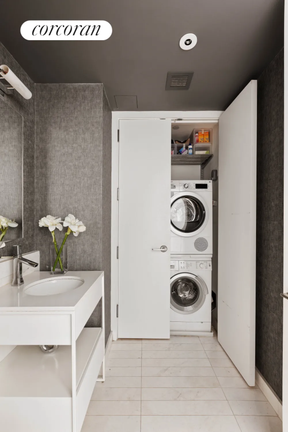 As you step into the apartment, you're greeted by an expansive open-concept living area bathed in natural light, courtesy of floor-to-ceiling windows that frame iconic city views. The state-of-the-art kitchen is a culinary enthusiast's dream, featuring sleek white lacquer cabinetry, premium Miele appliances, and dark stone countertops that exude understated luxury. Each bedroom is thoughtfully designed to be a tranquil retreat, with the master suite boasting a deep soaking tub, glass-enclosed shower, and solid teak wall detailing in the ensuite bathroom.