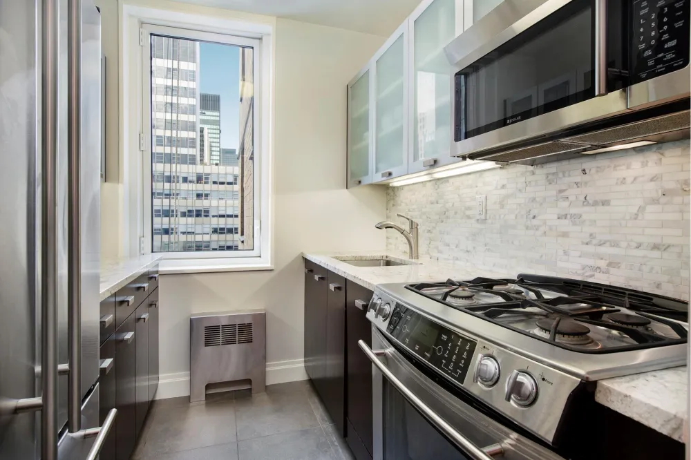 Welcome Home to the Largest 1 Bedroom Apt at Extell's Fabulous 212 Condominium. This triple mint apt was fully upgraded with the finest finishes and materials, including gorgeous solid oak hand laid herringbone floors and a luxurious spa-like marble mosaic bath. There's an Open Layout with separate Dining Area, Windowed Chefs Kitchen with state of the art Stainless Steel Bosch & Jenn Air appliances & Waterworks fixtures, Granite Countertops, Sleek Cabinetry and plenty of customized closets throughout. Perfectly located in the heart of Midtown, close to all transportation, steps from Grand Central and the Finest Restaurants.
