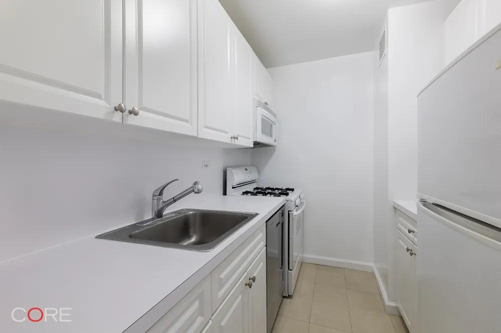 Experience breathtaking sunsets and partial river views from this bright and airy alcove studio, located on the 28th floor of a full-service doorman building. The apartment boasts a separate kitchen equipped with a dishwasher and built-in microwave, generous closet space, and an abundance of natural light. Enjoy the comfort of central heating and A/C, with monthly maintenance that covers all utilities.