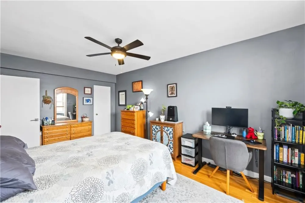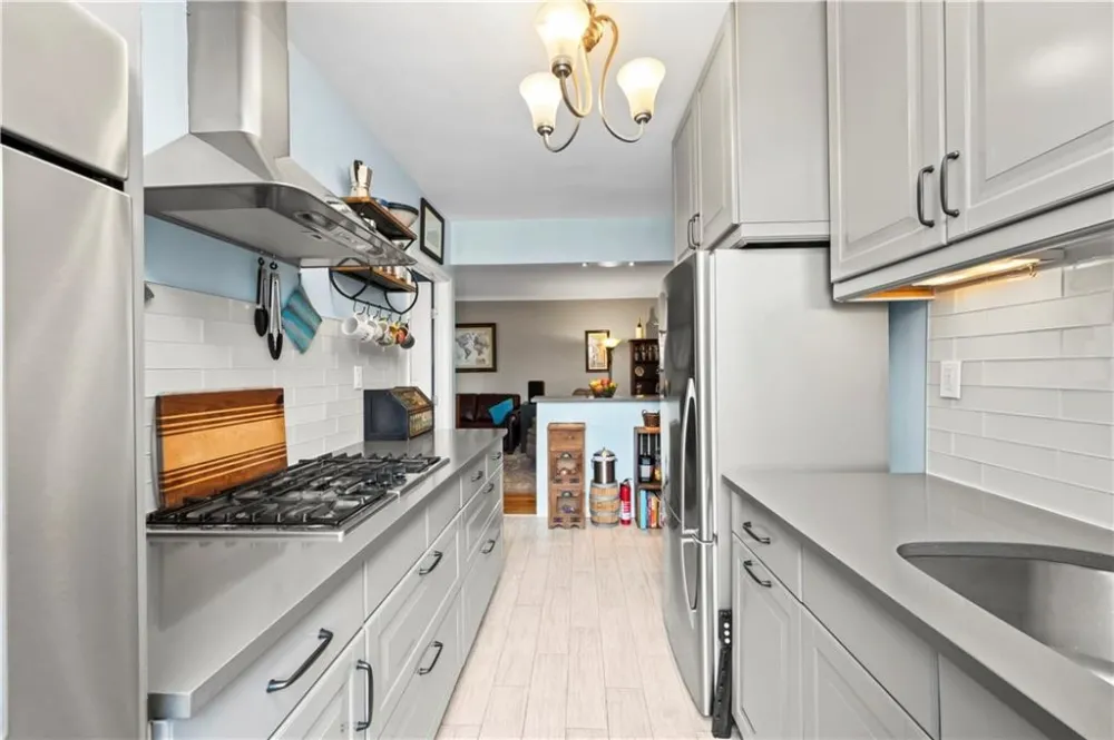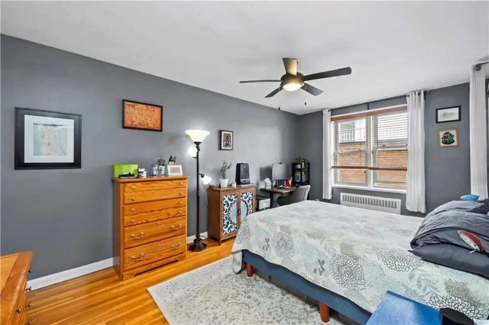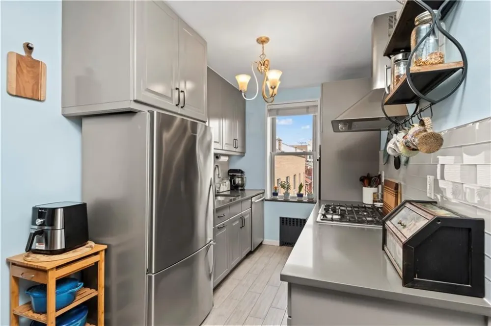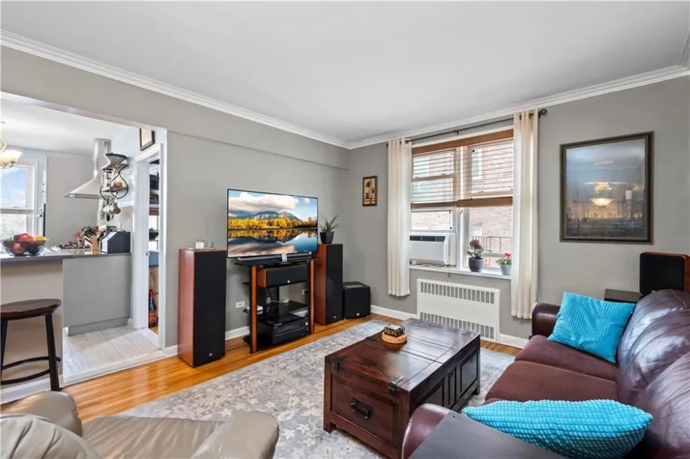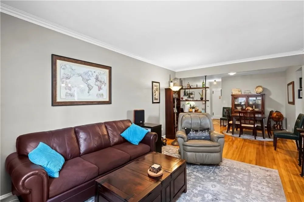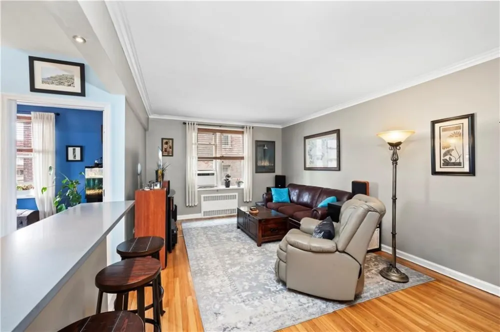 Every room is a gem in this impeccably renovated 2-bedroom corner co-op on Shore Road, with abundant natural light from both eastern and southern exposures. This thoughtfully designed layout features a 28 foot long living and dining area, perfect for entertaining. The beautifully renovated kitchen boasts stylish cabinetry, quartz countertops, and top-of-the-line Bosch and Fisher & Paykel stainless steel appliances, including a wall oven, gas cooktop, and hood vent. A stylish island with recessed lighting and bar seating adds both function and charm. The spa-like bathroom features a window and built-in niche for added convenience. The king-sized primary bedroom provides a serene retreat, while the second bedroom, currently used as an office, offers versatility. Every detail has been meticulously maintained, from elegant crown moldings to stunning hardwood floors and impressive closet space. Building amenities include a live-in super, laundry facilities, storage and bike rooms, and a pet-friendly policy. Parking is available via a waitlist. Enjoy the unbeatable location with express buses to NYC right outside your door. The scenic Shore Road Park offers a dog run, bike paths, free concerts, yoga sessions, and sports fields. Nearby, Bay Ridges vibrant dining scene, weekend farmers' markets, and summer strolls create a lively and welcoming community. Offers should be presented with a financial profile and pre-approval..