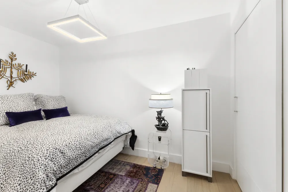 The chef-inspired kitchen boasts top-tier appliances, custom cabinetry from Italy, and sleek quartz countertops. Elegant and functional Porcelanosa floor tiles elevate the space. The custom-built bedroom closet, designed by California Closets, offers ample storage for your wardrobe and accessories.