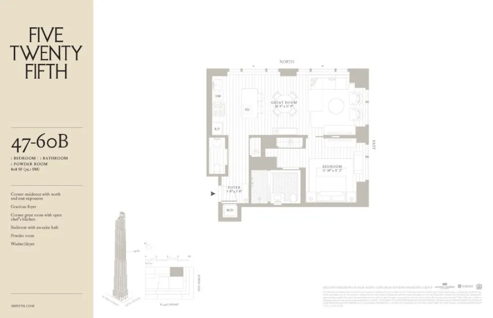 Exclusive Marketing and Sales Agent: Corcoran Sunshine Marketing Group. The complete terms are in an Offering Plan available from the Sponsor, 520 Owner 2 LLC, C/O Rabina Properties, LLC, 505 Fifth Avenue, 27th Floor, New York, NY 10017 under File No. CD 23-0148. Property Address: 520 Fifth Avenue, New York, New York 10036. Equal Housing Opportunity.