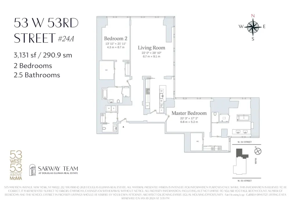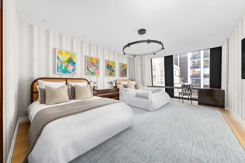 Welcome to Residence 24A at 53 West 53-a rare and refined find in the heart of Manhattan. This expansive 3,131-square-foot, two-bedroom, two-and-a-half-bathroom home has been meticulously redesigned for those who seek both sophistication and ease. Just bring your toothbrush and settle into this move-in-ready sanctuary.