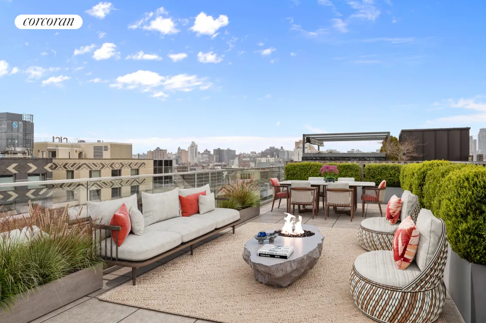 Unit 12D goes above and beyond with a private roof deck, ideal for your morning coffee or evening cocktails while taking in the panoramic cityscape. This large private roof deck of approximately 651 square feet permits quiet moments of solace, while the hustle and bustle of NYC lifelines hums quietly below.