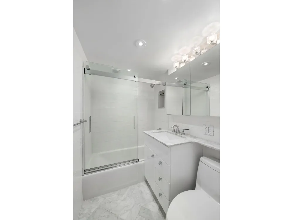 Enter into a proper foyer with two large closets and a spa-like bathroom. The renovated & modern open cook's kitchen will satisfy any home chef offering stone countertops with space for dining and stainless steel appliances, including dishwasher and built-in microwave. The living room is cozy & comfortable with extra space for a dining table or home office.