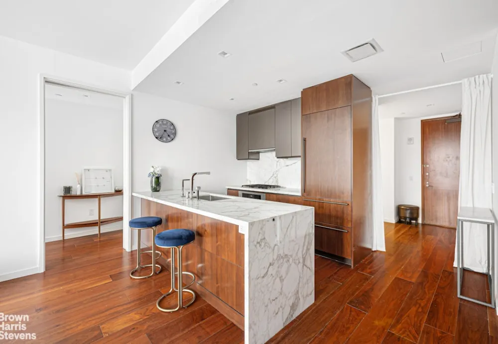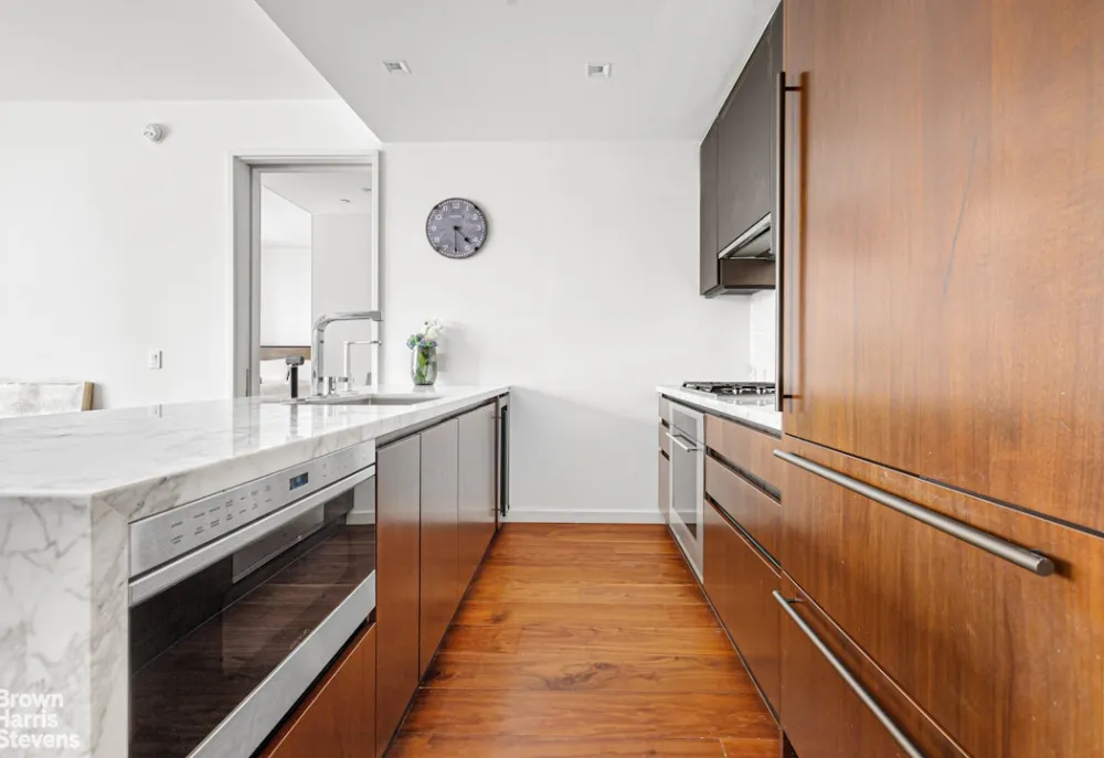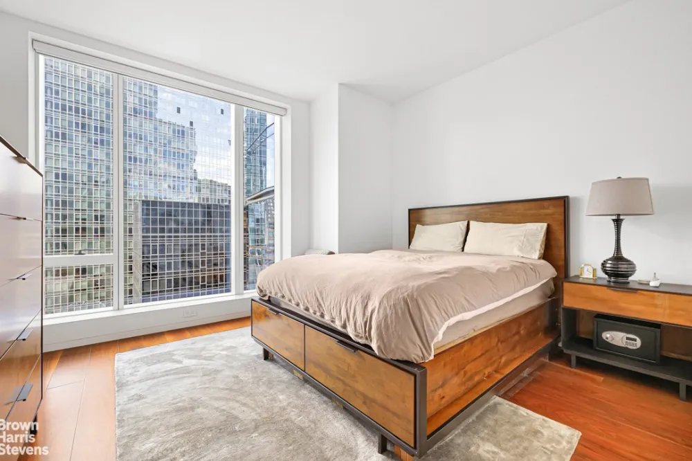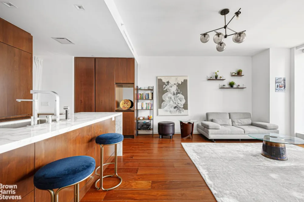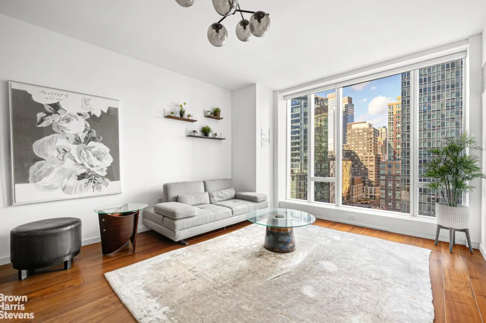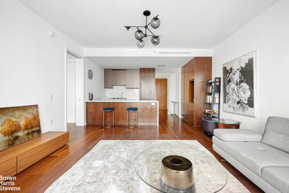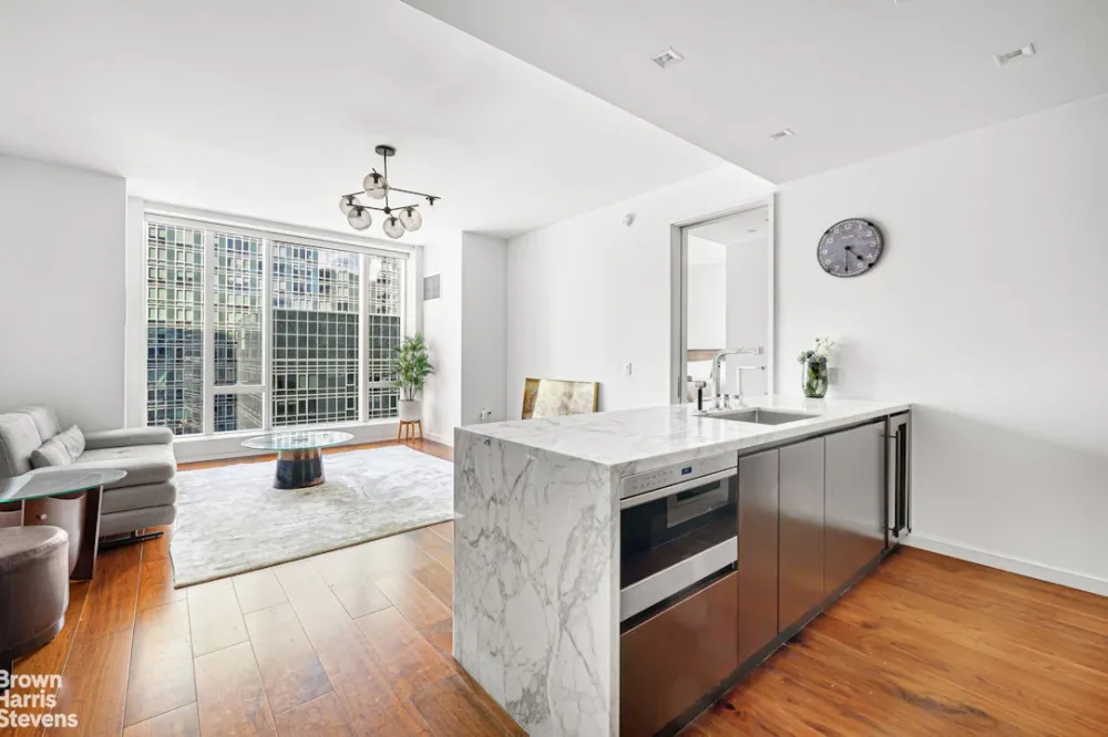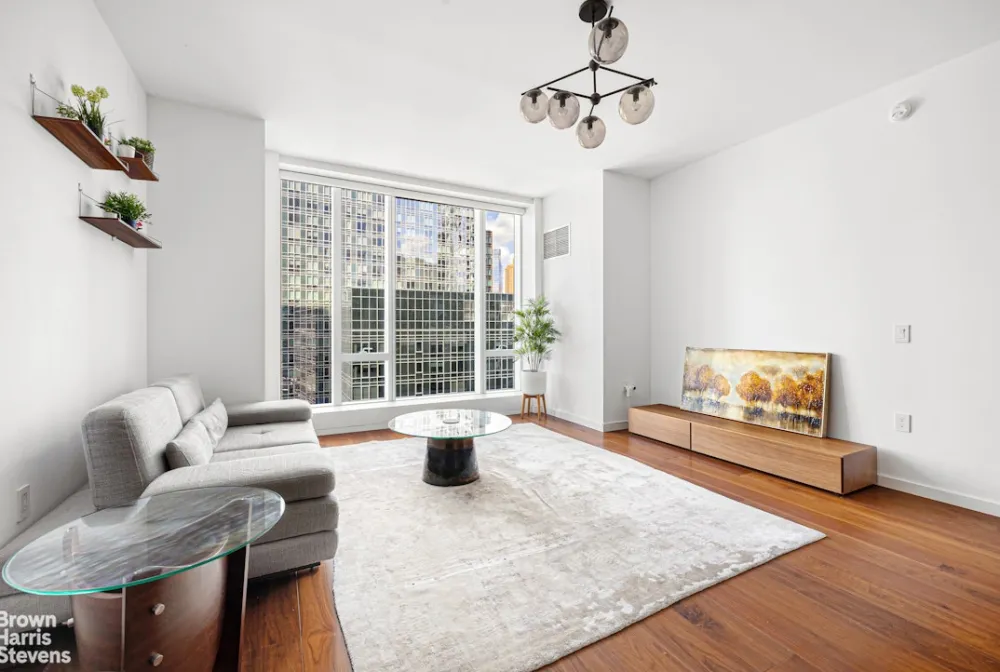 Spectacular One-Bedroom Residence at One West End. Step into refined luxury in this expansive 919-square-foot one-bedroom, one-and-a-half-bathroom home located at the iconic One West End, a true architectural masterpiece envisioned by world-renowned designer Jeffrey Beers. Residence 11L boasts a thoughtfully designed layout ideal for both gracious entertaining and comfortable everyday living. Soaked in natural light from floor-to-ceiling windows, the generous, rectangular living room is anchored by wide-plank white oak flooring and exquisite custom finishes throughout.