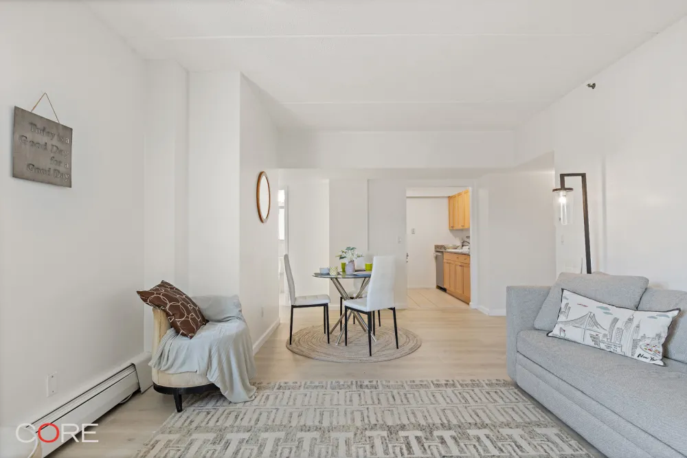 Apartment 6M at 300 West 145th Street is a bright, southwest-facing two-bedroom, two-bath home that combines comfort, style, and value.