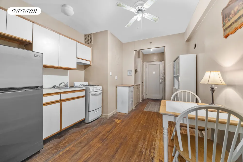 Larger than many modern one-bedrooms, this sunlit gem overlooks a serene, beautifully landscaped garden at the rear of a peaceful, well-maintained building. Step inside through a foyer featuring a pantry/closet system that leads into the kitchen. The expansive, open-concept living area boasts two west-facing windows with garden views, offering an ideal setting for both relaxation and entertaining.