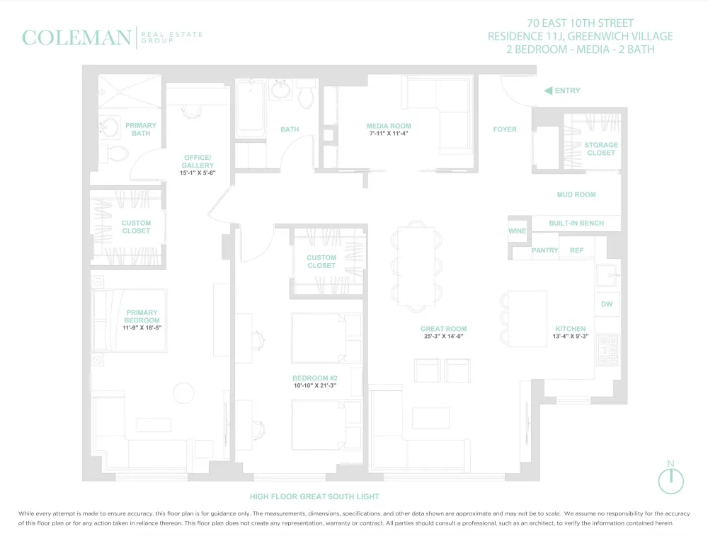 MOVE RIGHT IN! Seize the rare opportunity to move right into a GUT renovated, generously proportioned 2 Bedroom 2 Bath plus Media Room home! From this high floor vantage at the esteemed full-service Stewart House co-op in Greenwich Village, Residence 11J is bathed in natural light from oversized southern-facing windows. This home boasts an expansive and well drawn layout from the owners thoughtful gut renovation. They carefully created a large Mudroom, a separate Den / Media Room, an open windowed Kitchen with eat-on island, and endless storage from six large custom fit closets, three of which are walk-in.