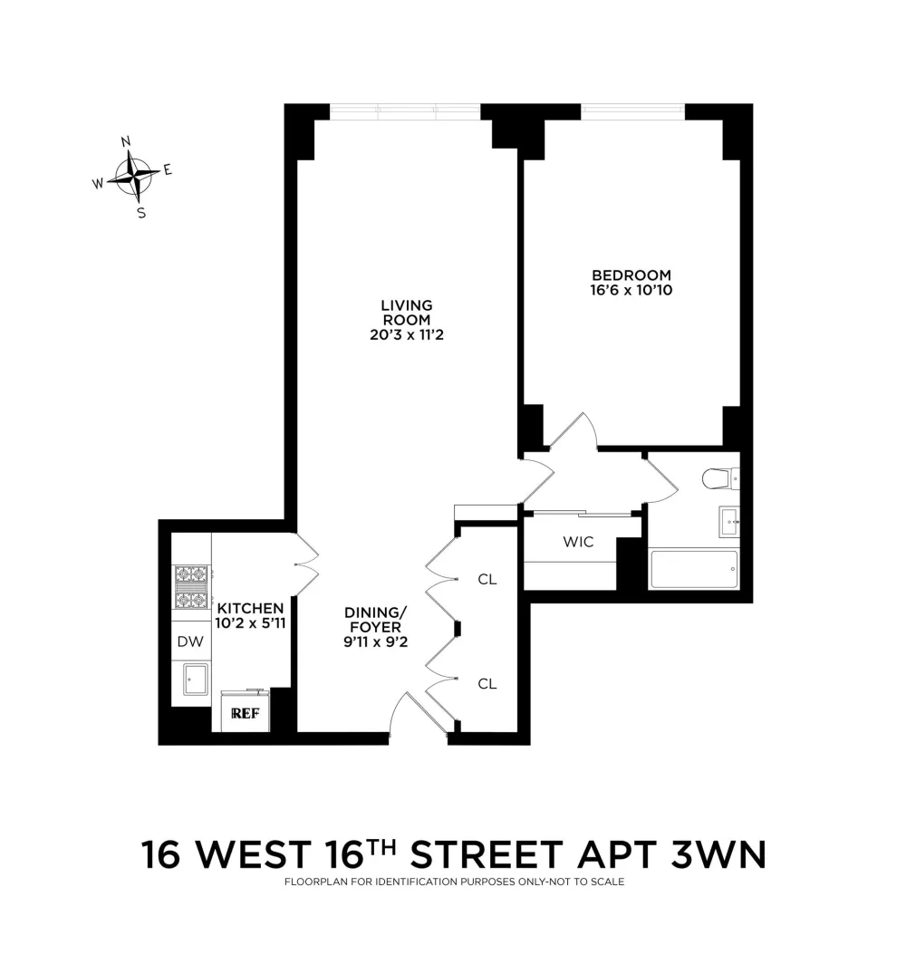 Welcome to apartment 3WN. Opportunity to re-design this special space. The apartment faces north towards 16th Street. Upon entry you are drawn to the exposure of historic red brick townhouses and a gorgeous white locust tree. The entry foyer or dining area is sizable and adjacent is a wall of deep closets.