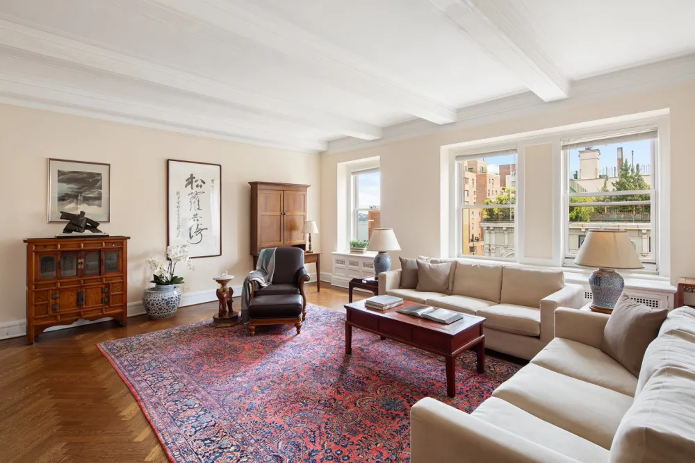 Step into this stunning, sunlit residence featuring three king-size bedrooms, two renovated baths, and a spacious living room offering picturesque views of Riverside Park and the Hudson River. This top-floor prewar gem boasts a grand formal dining room, a large windowed kitchen with modern upgrades, and ample storage with ten closets. Enjoy the elegance of 10-foot beamed ceilings and one of the Upper West Side's lowest maintenance fees for a home of this size.