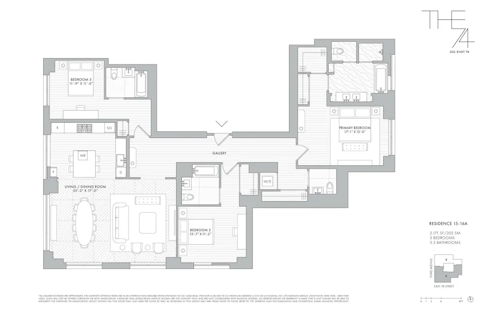 Exclusive Sales & Marketing Agent: Douglas Elliman Development Marketing. The complete offering terms are in the Offering Plan for the respective Unit, available from the applicable Sponsor: El Ad East 74 LLC, having an address c/o El Ad US Holding, Inc., 575 Madison Avenue, 22nd Floor, New York, New York 10022. File No. CD23-0034. Equal Housing Opportunity.