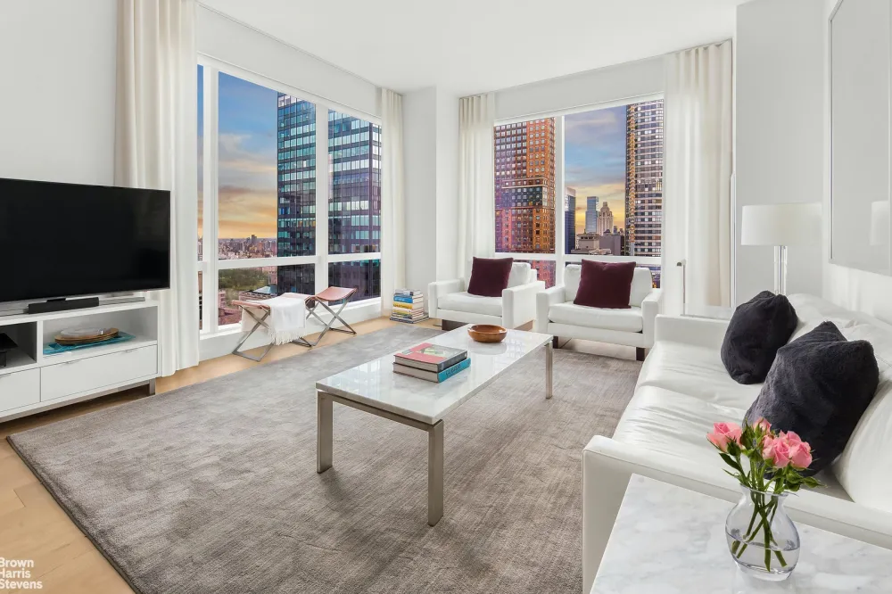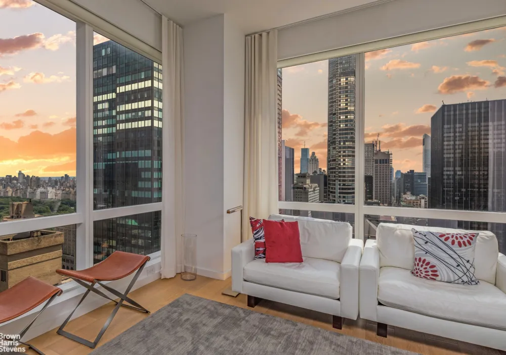 This high floor "breath-taking" two bedroom apartment has been completely renovated and is move -in ready. The apartment has floor to ceiling windows (nearly 10 ft. ceiling height) with amazing city and Central Park views. The apartment features a gourmet kitchen with top of the line appliances (Wolf and Sub-Zero), 2 designer bathrooms (with a double sink the Master bath), abundant closet space (included a huge walk-in closet), washer/dryer and much more. All the rooms have brand new floors, motorized shades, as well an ultra sophisticated electronic lighting system. This apartment is located in a "White Glove" condo steps from Central Park, great restaurants, supermarkets (Whole Foods) and more. The building has a newly renovated business center, resident's lounge and a state-of-art gym.,etc. PLEASE CONTACT THE SELLERS AGENT TO SEE THIS UNIT.