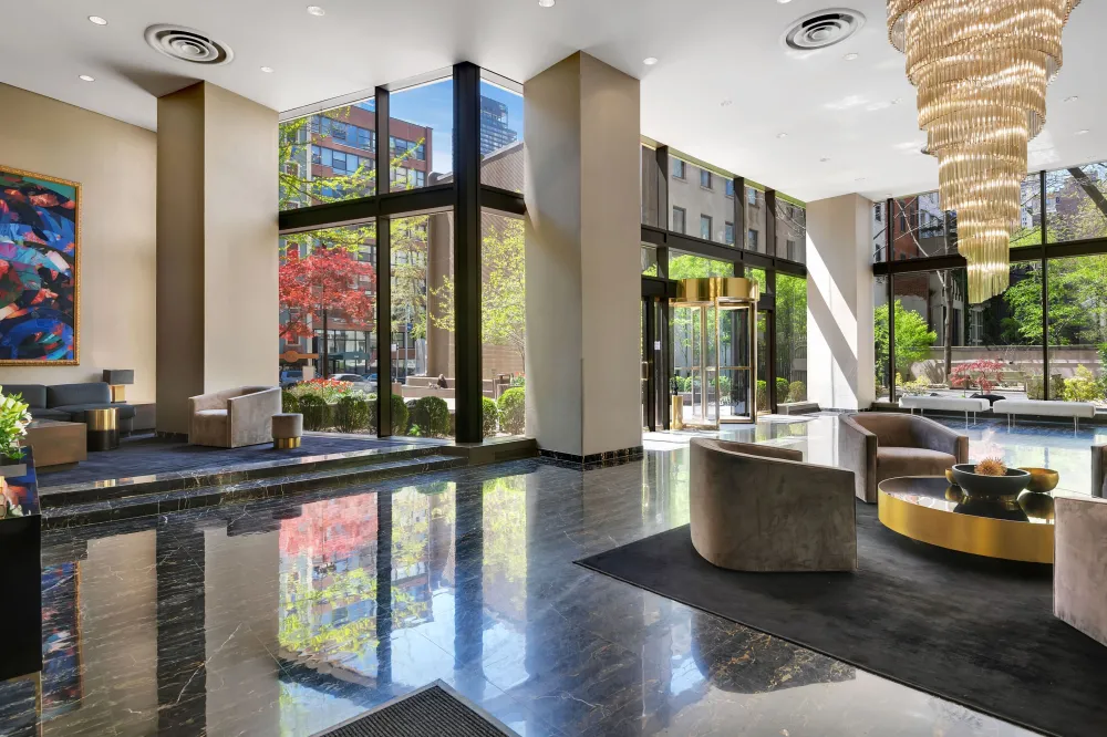 167 E 61st Street is a 39-story luxury building boasting a commanding entrance with a 2-story waterfall in its grand lobby. It has a 24-hour doorman, concierge, a fitness center, playroom, a private community garden for tenant shareholders, a garage, and storage spaces. The building also offers 24-hr white-glove service. It is located at the intersection of 61st Street and 3rd Avenue.