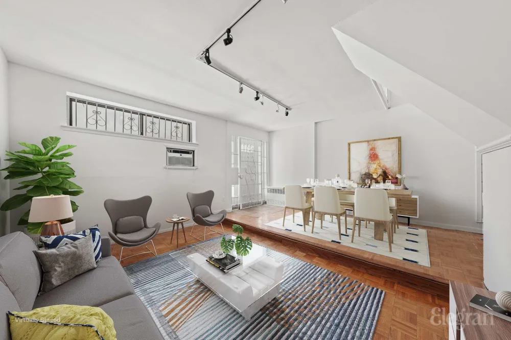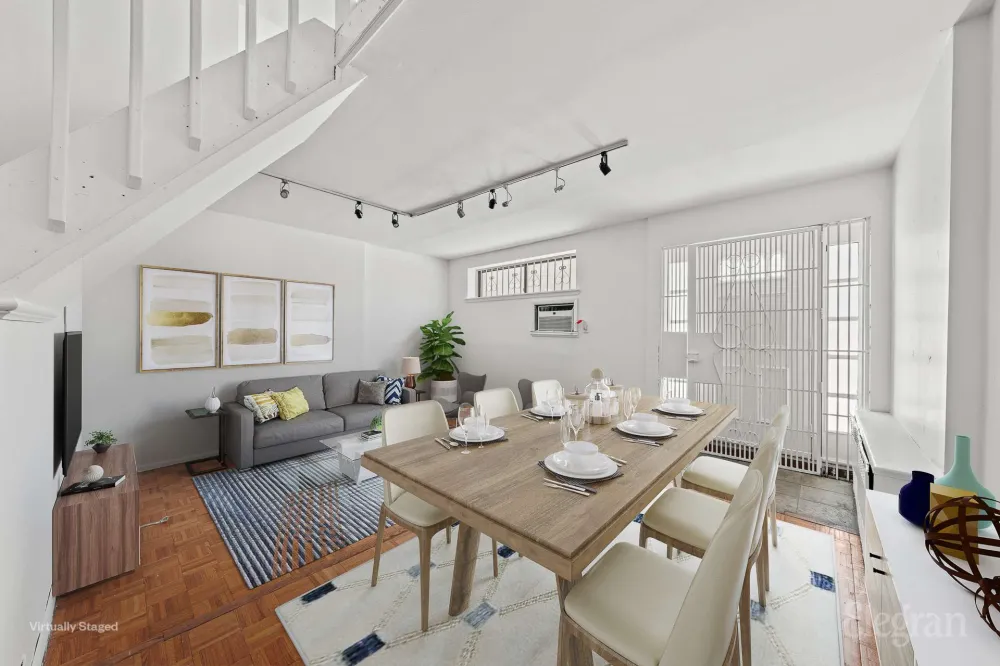 SPONSOR UNIT, NO BOARD APPROVAL! This ground-floor triplex with private street access, right in the heart of Gramercy, offers a life of absolute comfort and ready to be reimagined by its new owners. Upon entering the apartment you will be on the middle level, where you will be welcomed by a cozy dining...			See more