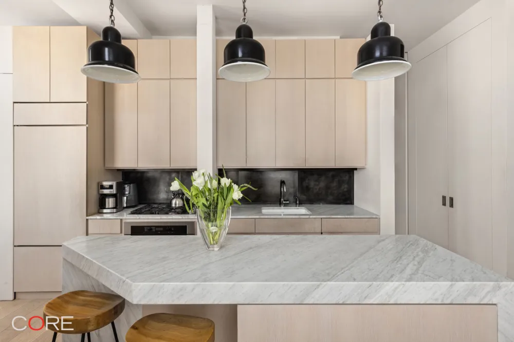 Every possible inch of space has been maximized with floor-to-ceiling storage throughout. Unit amenities include a second full bathroom with radiant-heated floors, built-in Sonos speakers throughout, Lutron lighting, and a Honeywell system to control the temperature. New noise-canceling UV windows, new oak flooring, and an in-unit washer/dryer complete this turnkey residence.
