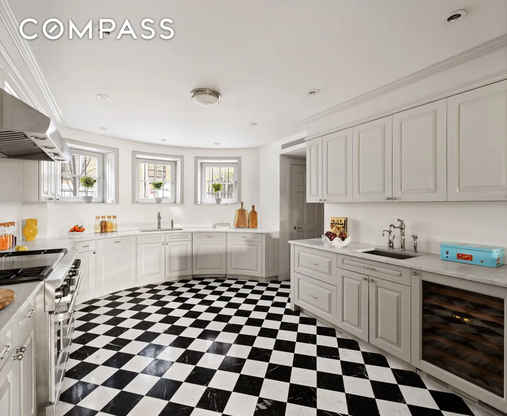 On the garden level of the house is the chef's kitchen, true to the description with significant storage space, appliances, marble countertops, and custom updated cabinetry. This floor has more room for living and entertaining, a gas fireplace, and access to the garden.