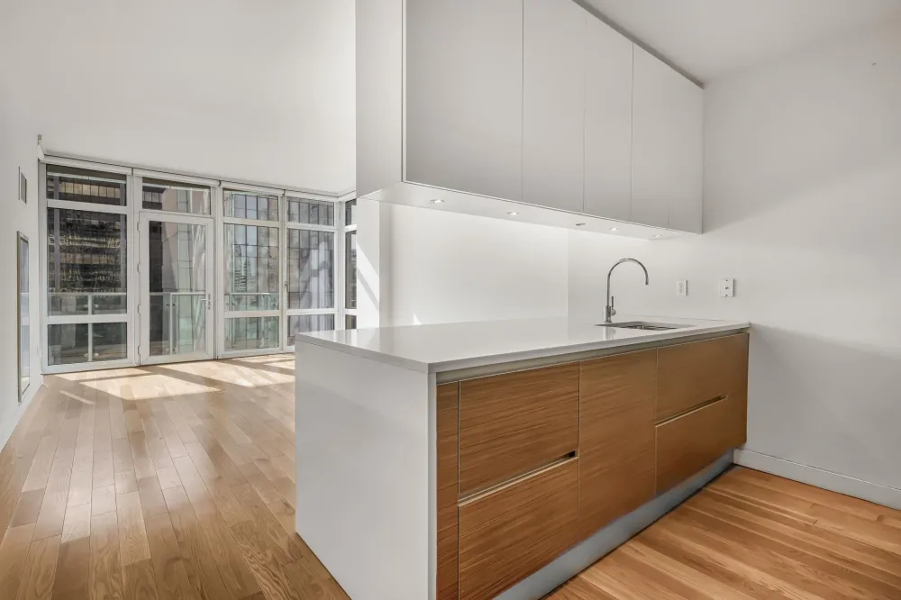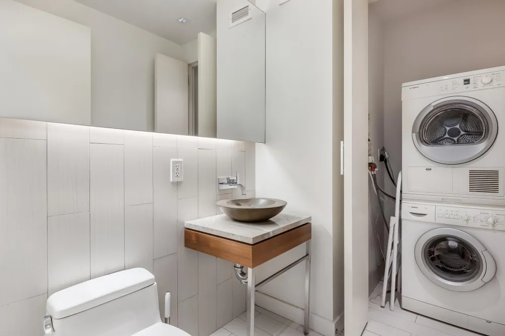 Designed for both style and function, the open kitchen is a culinary masterpiece featuring imported custom Italian high-lacquer cabinetry, Caesarstone countertops, and premium appliances, including a Sub-Zero refrigerator, Bosch range, dishwasher, and an in-unit washer and dryer. Whether hosting guests or preparing a quiet meal at home, this kitchen is as practical as it is stunning.