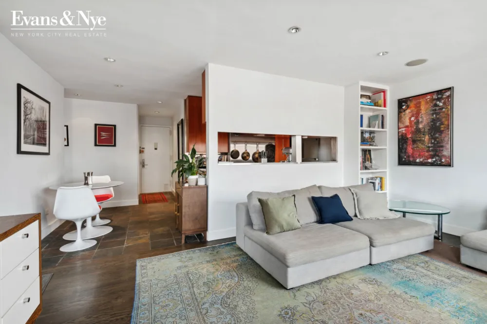 Apartment 17D is the perfect high-floor one-bedroom with modern updates. East and south facing, light fills the apartment throughout the day. The layout is optimized with separate living and sleeping areas and large windows in all the rooms. Improvements over the years have included new floors, bathroom, finishing the closets, and enlarging the kitchen, adding a passthrough, storage, and professional-level surfaces and appliances.