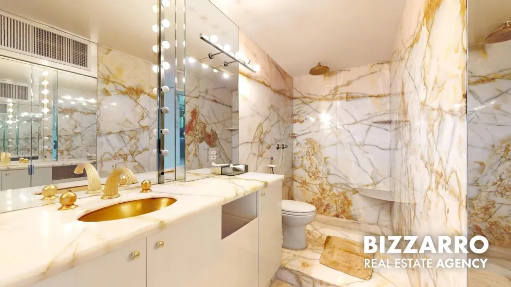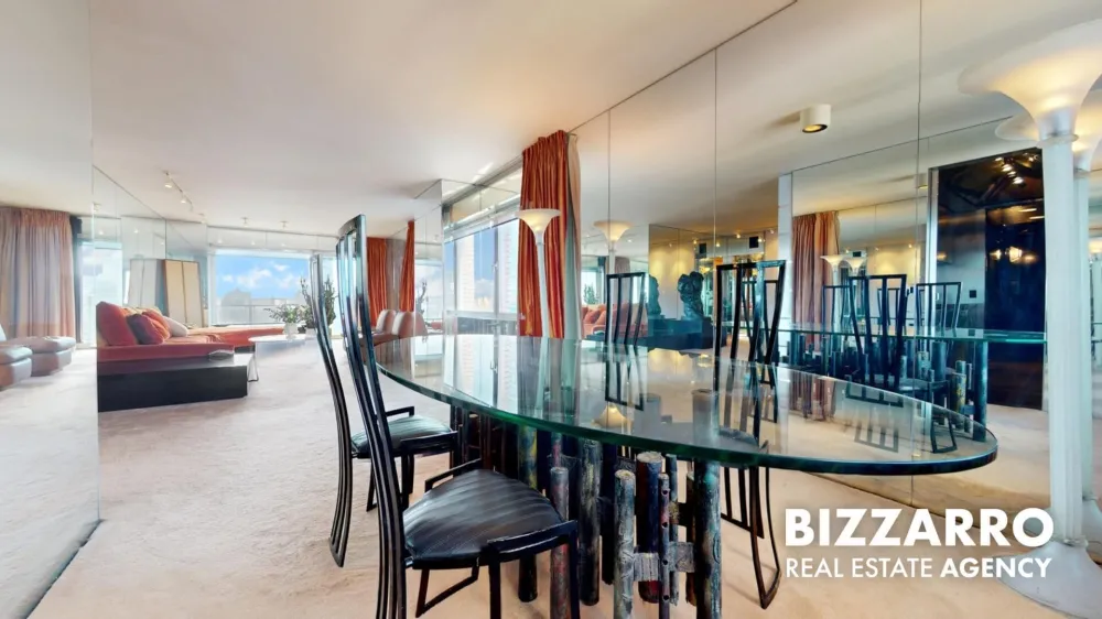 The apartment’s interior design offers themes to suit any occasion with high ceilings, and mesmerizing wall and ceiling treatments. Natural light pours in through massive windows, further reflected in key areas through cleverly positioned glass accents. You’ll enjoy large and open living, dining, and entertaining areas, along with three bedrooms, four full and two half baths.