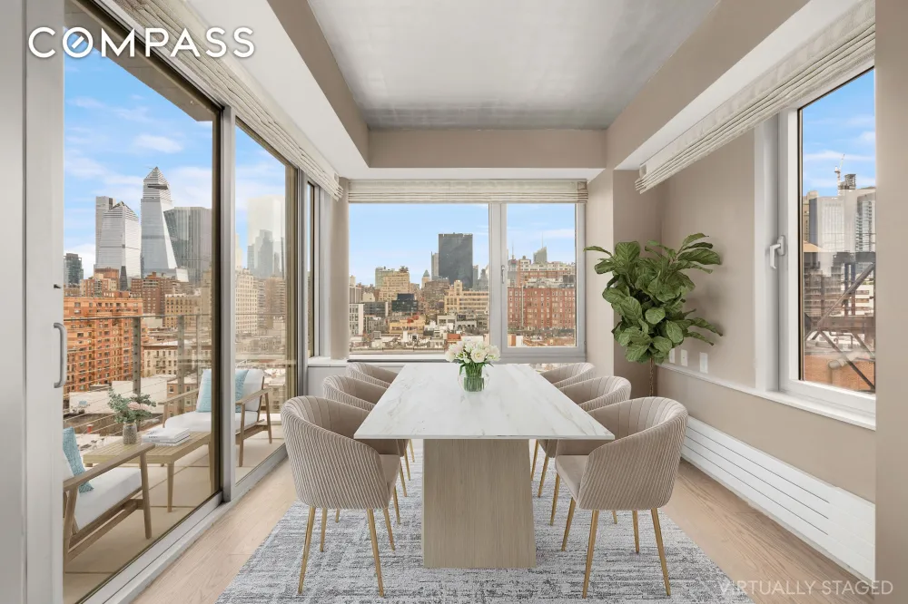 The pièce de résistance is the private massive roof deck, offering wide open city views featuring Manhattan skyline's most prolific buildings including the Empire State Building. This extraordinary outdoor space is an urban sanctuary, perfect for alfresco dining or simply savoring the breathtaking skyline of Manhattan.
