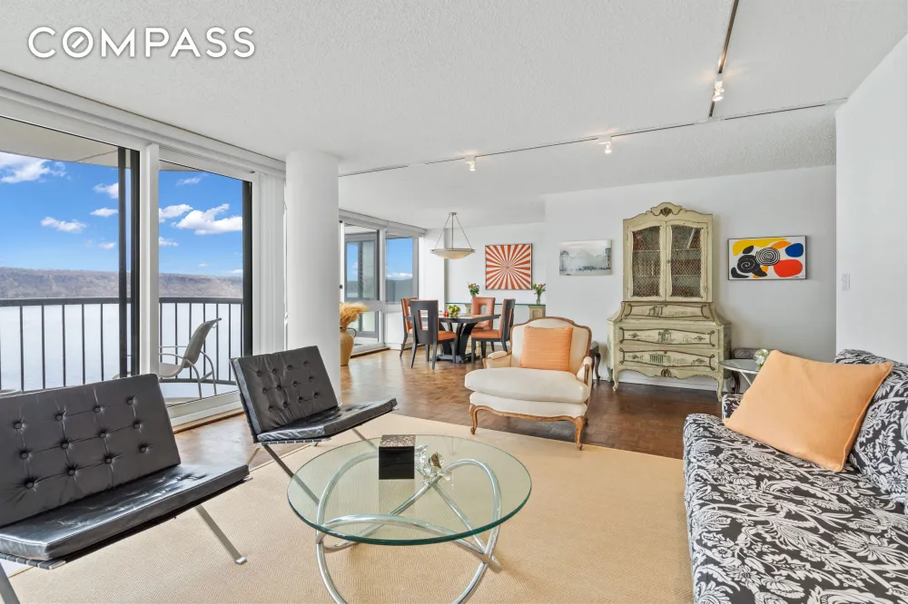 This bright and spacious 3BR/2BA condo is part of La Rive’s most desirable line, with floor-to-ceiling windows that open up to breathtaking south, west, and north views—stretching all the way to the Mario Cuomo Bridge. A private balcony off the living room offers a front-row seat to the changing seasons.