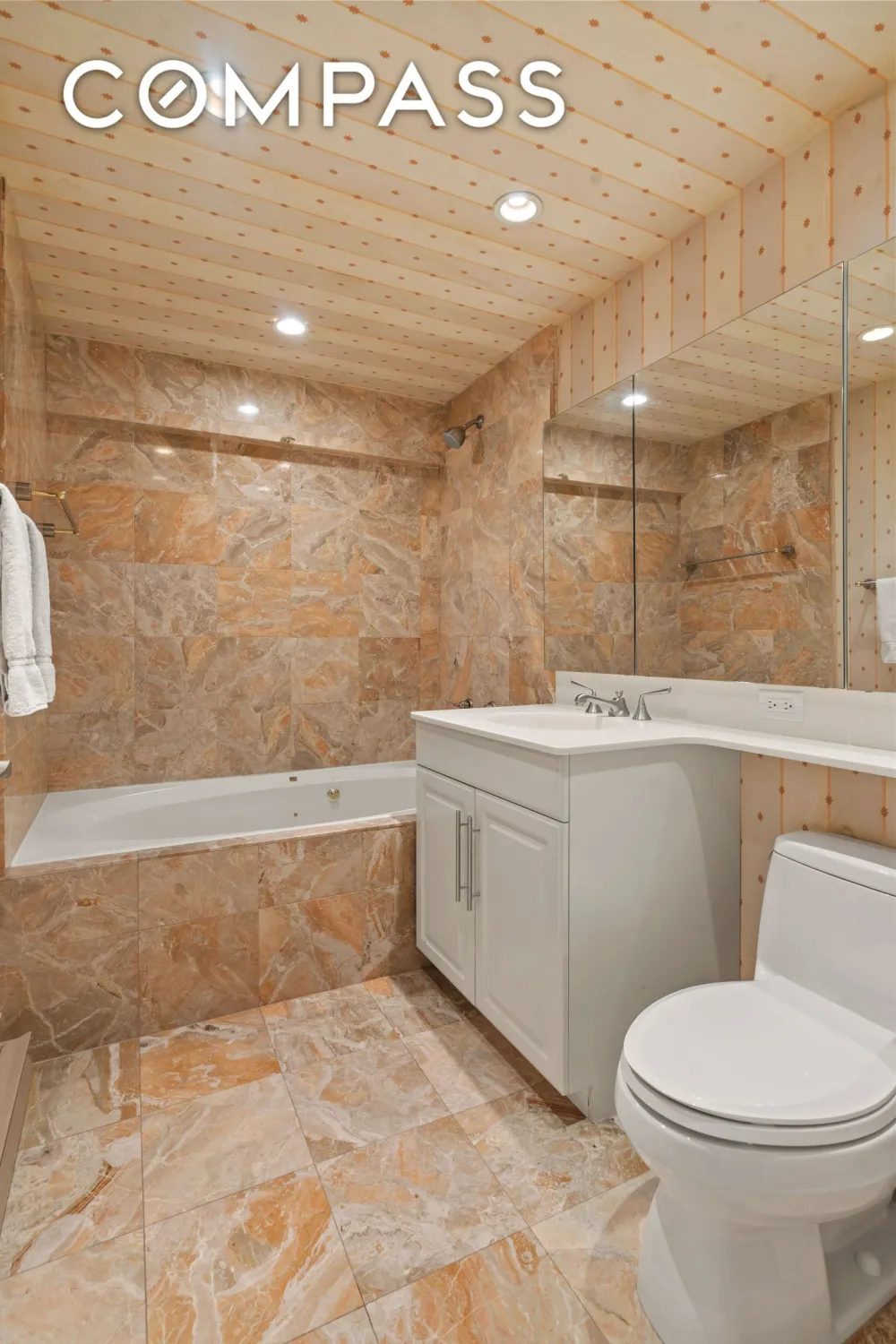 All three bedrooms face east, catching the lovely morning light and overlooking the Henry Hudson Park and the Spuyten Duyvil Creek. The primary bedroom features California custom closets and an elegant pink marble en-suite bath with a jacuzzi tub. The two other large bedrooms share a second full bath with a walk-in shower.
