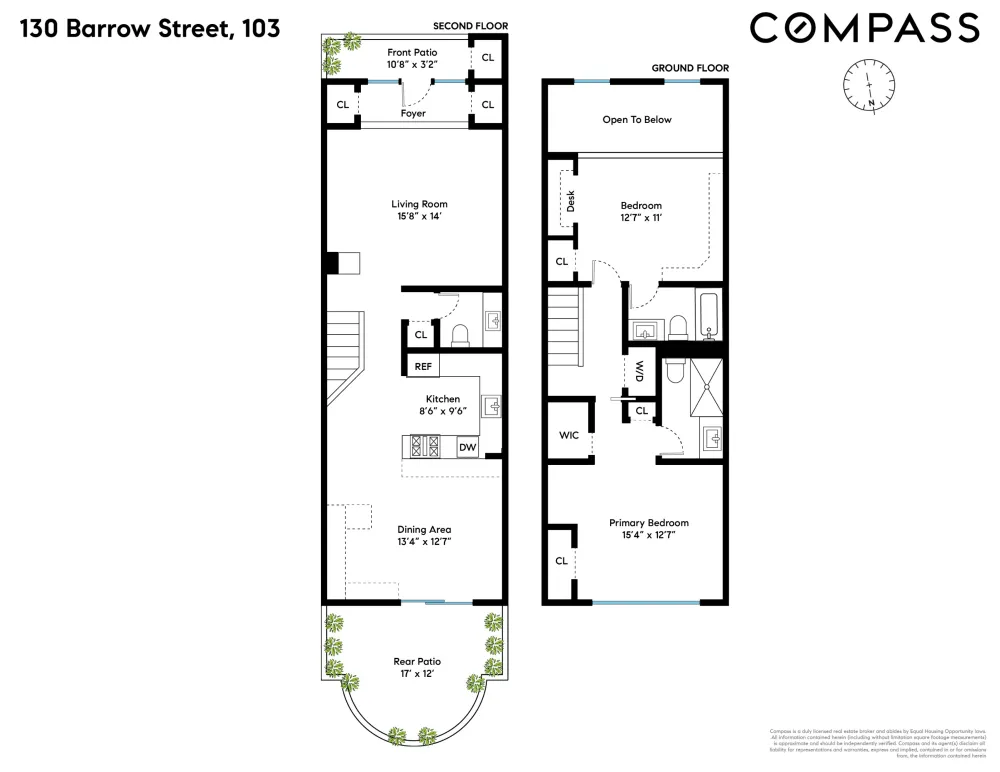 Originally built in 1931, 130 Barrow Street was converted into 68 residential units by the renowned architectural firm Stephen B. Jacobs in 1983. The building’s amenities include a stunning, landscaped roof deck with Hudson River views, windowed elevators overlooking a lush atrium with giant ginkgo trees, a package room with BuildingLink integration, and a live-in superintendent & porter.