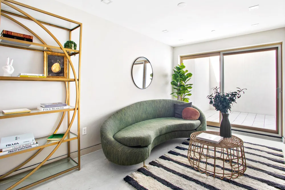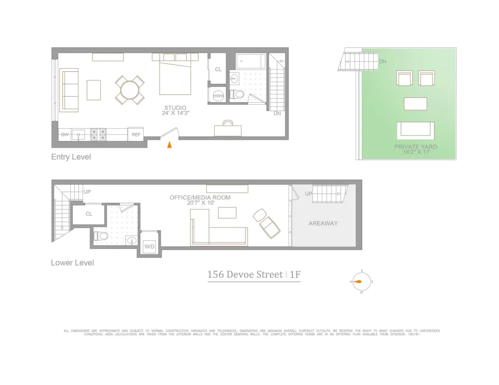 Unit 1F is a unique studio duplex with a spectacular media room/rec space and a private yard!