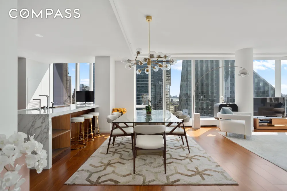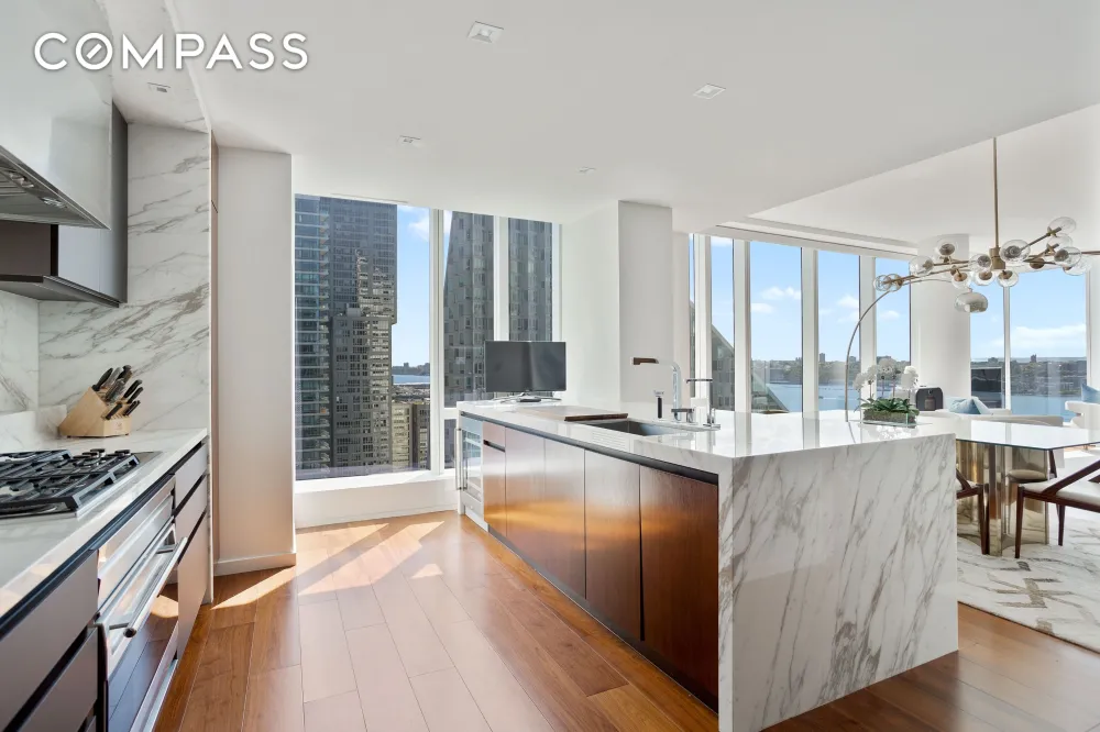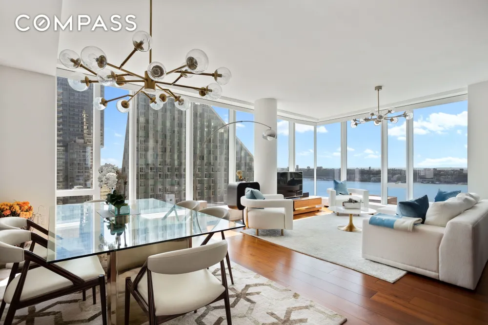 Welcome home to this generous 2,836 square-foot corner four-bedroom, four-and-a-half bath residence designed by Jeffrey Beers, wrapped in floor-to-ceiling windows showcasing spectacular river and city views to the south and west. The entire apartment is outfitted with motorized shades with solar and blackout modes. A rich walnut residential entrance door complemented by a brushed bronze newspaper box and Nanz hardware invites one into a welcoming foyer and the exceptionally finished space featuring seven-and-a-half-inch wide walnut plank flooring.