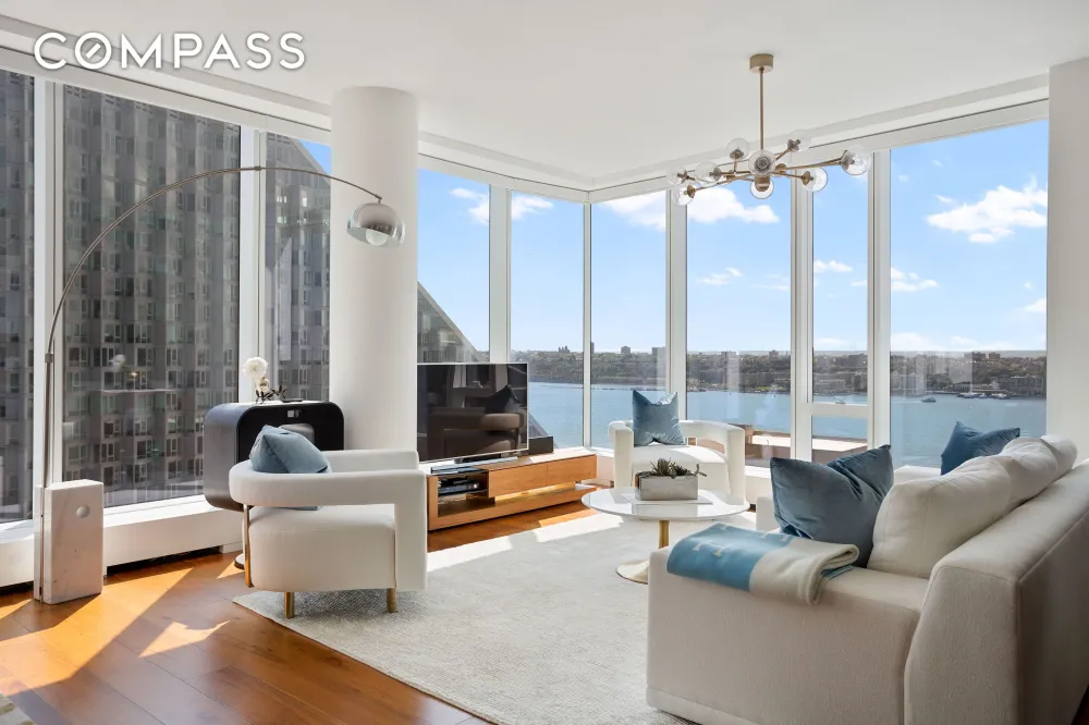 421-a tax abatement is in effect until 2040. Welcome home to this generous 2,836 square-foot corner four-bedroom, four-and-a-half bath residence designed by Jeffrey Beers, wrapped in floor-to-ceiling windows showcasing spectacular river and city views to the south and west. The entire apartment is outfitted... See more