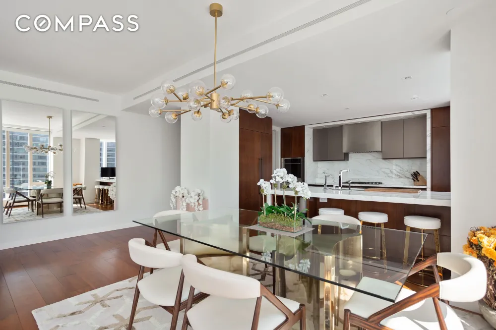 Commanding an entire city block between 59th and 60th Streets at West End Avenue, One West End is home to 35,000 square feet of indoor and outdoor resort-inspired amenities, including a 75-foot swimming pool within a double-height cantilevered atrium, a private fitness center and spa, and a 12,000 square foot terrace featuring cabanas, lush green spaces and areas for grilling and outdoor entertaining. Additional grandly-scaled amenity spaces include a living room with fireplace, media, billiards, and game rooms, a children’s playroom overlooking the garden terrace, and a private dining room with a chef’s demonstration kitchen. On-site parking and resident storage are also available.Â