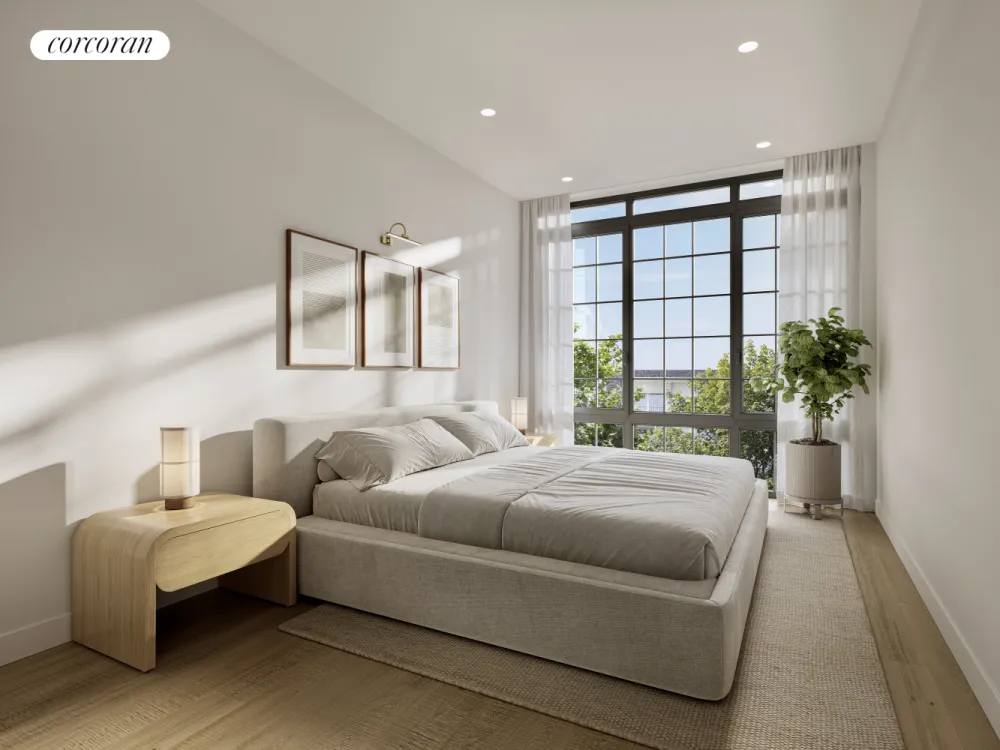 Spacious homes have been thoughtfully laid out to optimize space, flow and function. Each boasts a sun-filled open floorplan, tall ceiling heights, recessed lighting, wide-plank European oak hardwoods, and floor-to-ceiling windows. Further maximizing comfort are plentiful closets, an in-unit washer-dryer, central heating & cooling system, and private outdoor space in most residences.