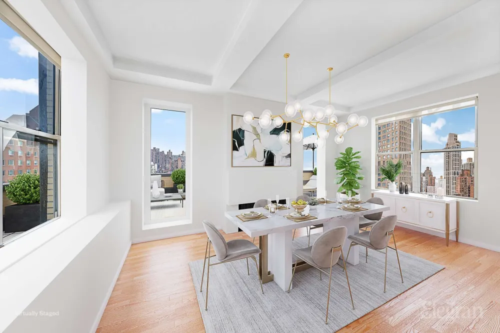 Perched atop a classic Upper East Side cooperative, Penthouse A at 225 East 79th Street is a grand, light-filled three-bedroom, three-bathroom duplex offering over 1,000 square feet of private outdoor wrap-around space and a layout that seamlessly blends prewar elegance with contemporary comfort.